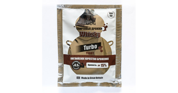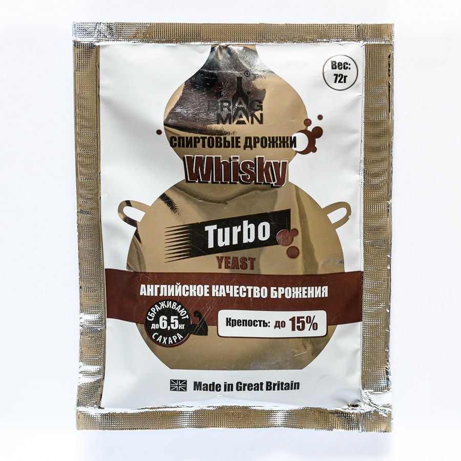 Active dry alcoholic turbo yeast Turbo yeast alcohol BragMan "Whisky TURBO" (72 gr) with a full range of macro and micro nutrients, ideal for fermentation of fruit and sugar base of any raw material (sugar glucose syrup). Turbo yeast alcohol Bra..