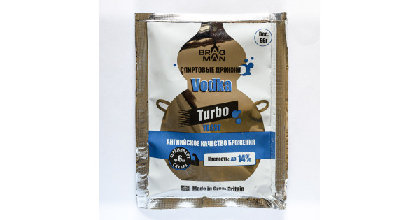 Active dry alcoholic turbo yeast Turbo yeast alcohol BragMan "Vodka TURBO" (66 gr) with a full range of macro and micro nutrients, ideal for fermentation of fruit and sugar base of any raw material (sugar glucose syrup). Turbo yeast alcohol Brag..