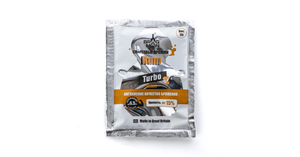 Active dry alcoholic turbo yeast Turbo yeast alcohol BragMan "RUM TURBO" (72 gr) with a full range of macro and micro nutrients, ideal for fermentation of fruit and sugar base of any raw material (sugar glucose syrup). Turbo yeast alcohol BragMa..