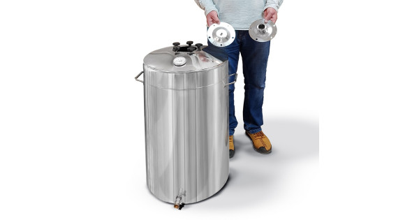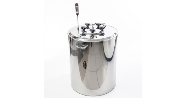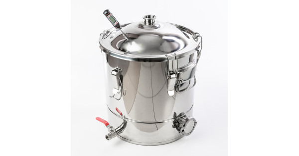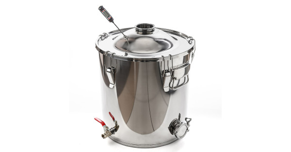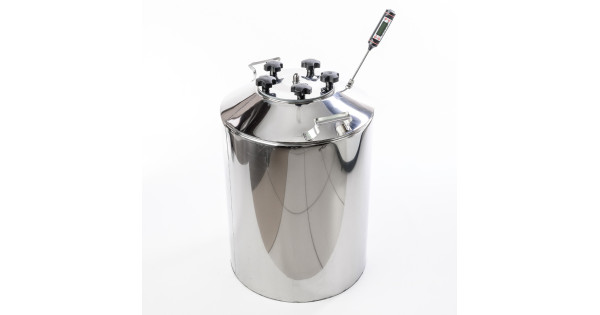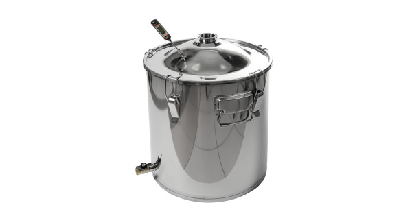 Alembic 30 liters to cover the neck 75 mm thread for the installation of the thermometer for home-brewed apparatus "Gorilych" made of food-polished stainless steel with thickness of 1 mm at the factory, has a robust design, has a flat botto..