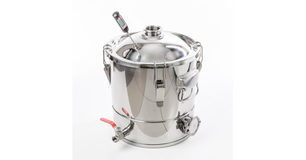 CheckoutAlembic 12 liters to cover the neck 35 mm thread for the installation of the thermometer for home-brewed apparatus "Gorilych" made of food-polished stainless steel with thickness of 1 mm at the factory, has a robust design, has a flat botto..