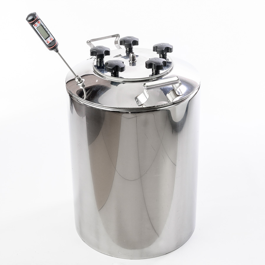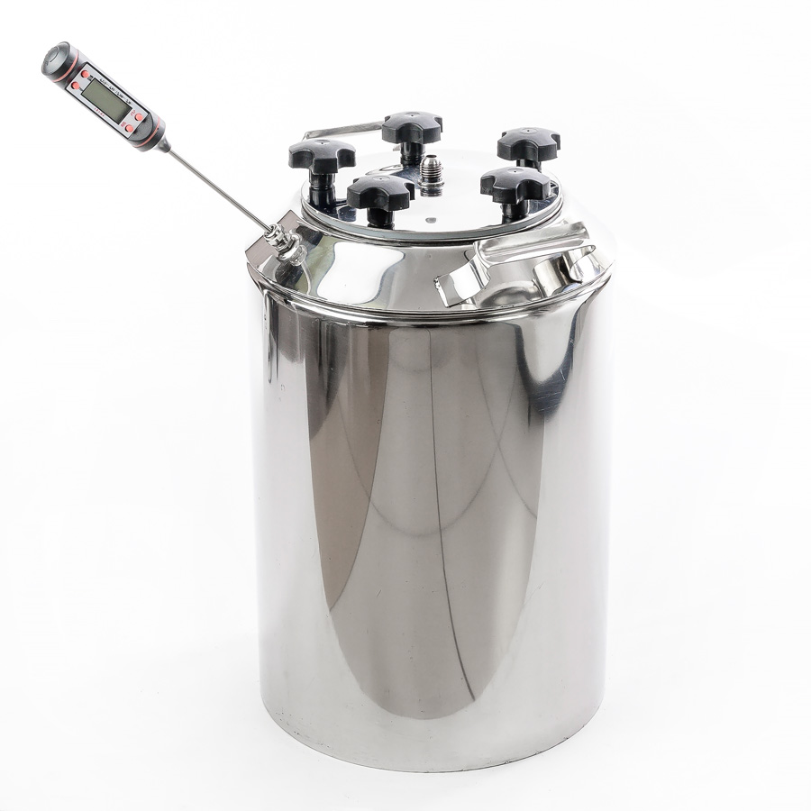 Alembic 20 liters to cover the neck 75 mm thread for the installation of the thermometer for home-brewed apparatus "Gorilych" made of food-polished stainless steel with thickness of 1 mm at the factory, has a robust design, has a flat botto..