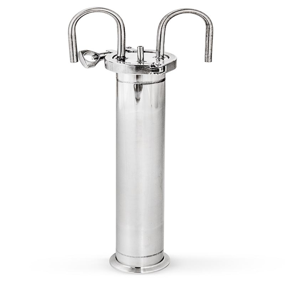 1. Short tsar 0.5 meters. It is possible not to use the drawer at all, and to install the head of the column immediately onto the cube. It is recommended to use a short drawer to protect the coils of the Dimroth refrigerator in the reflux condenser from pollution in the event of splashing mud. The drawbridge is used without filler.