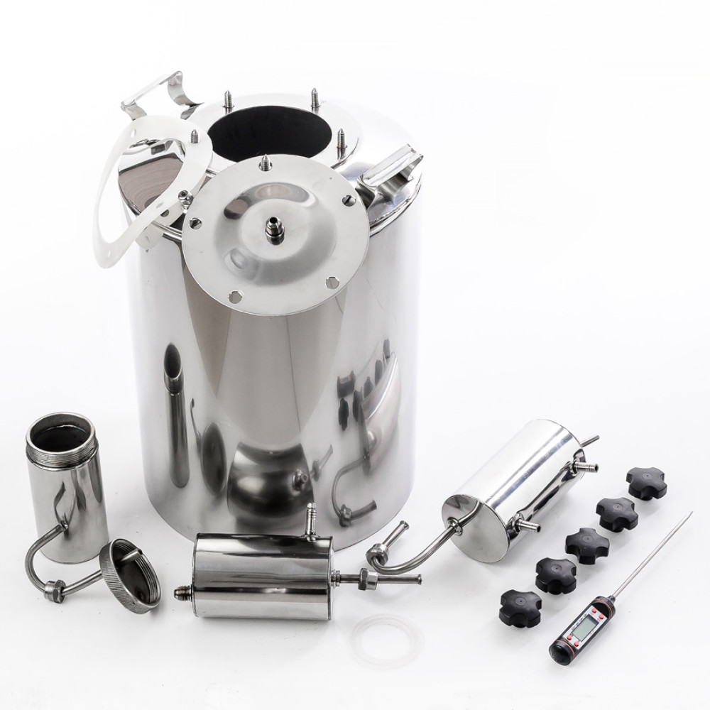 The device is of high quality, which is not surprising taking into account the capabilities of high-tech equipment used in the plant for its production. Spacious and of food grade stainless steel construction is equipped with two comfortable steam drum, which allows you to turn brewing process into an art. Use your favorite recipes or create your own - load the ingredients in a convenient-to-use large throat of 110 mm and have an elite alcohol at the price of the most simple!