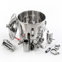 - Fill the distillation cube with a small amount of clean water, collect the brewing apparatus, and connect the hoses to supply water for cooling to boil (distilled) for 30 minutes. To disassemble the moonshine machine, to drain the remaining water from the distillation cube and the dryers.