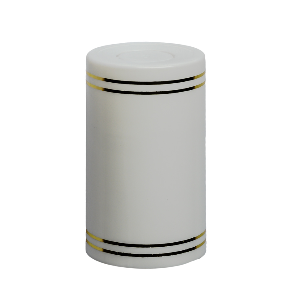 Polymeric wine cork is completely made of foamed food grade polymeric materials that are resistant to alcoholic environments. Its physical and mechanical characteristics are superior to cortical. It does not emit trichloroanisole, eliminating extrane..